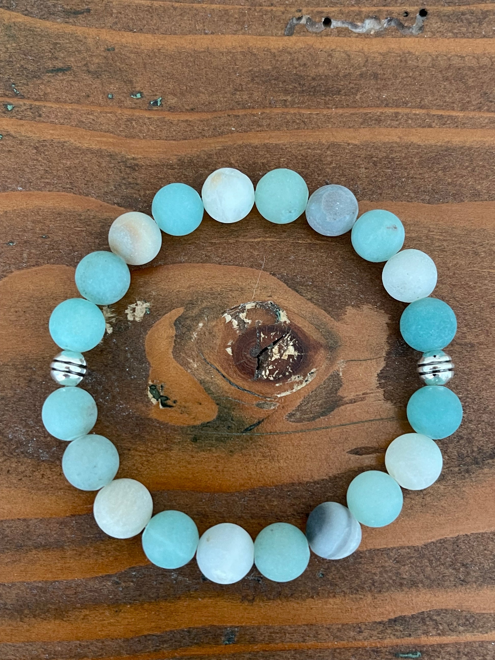 Perlengröße 8 mm sowie 2 versilberte Perlen in Größe 6 mm